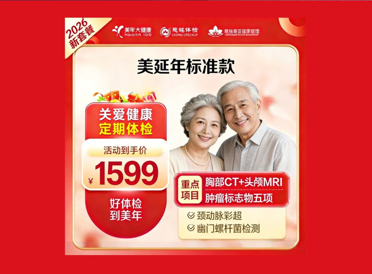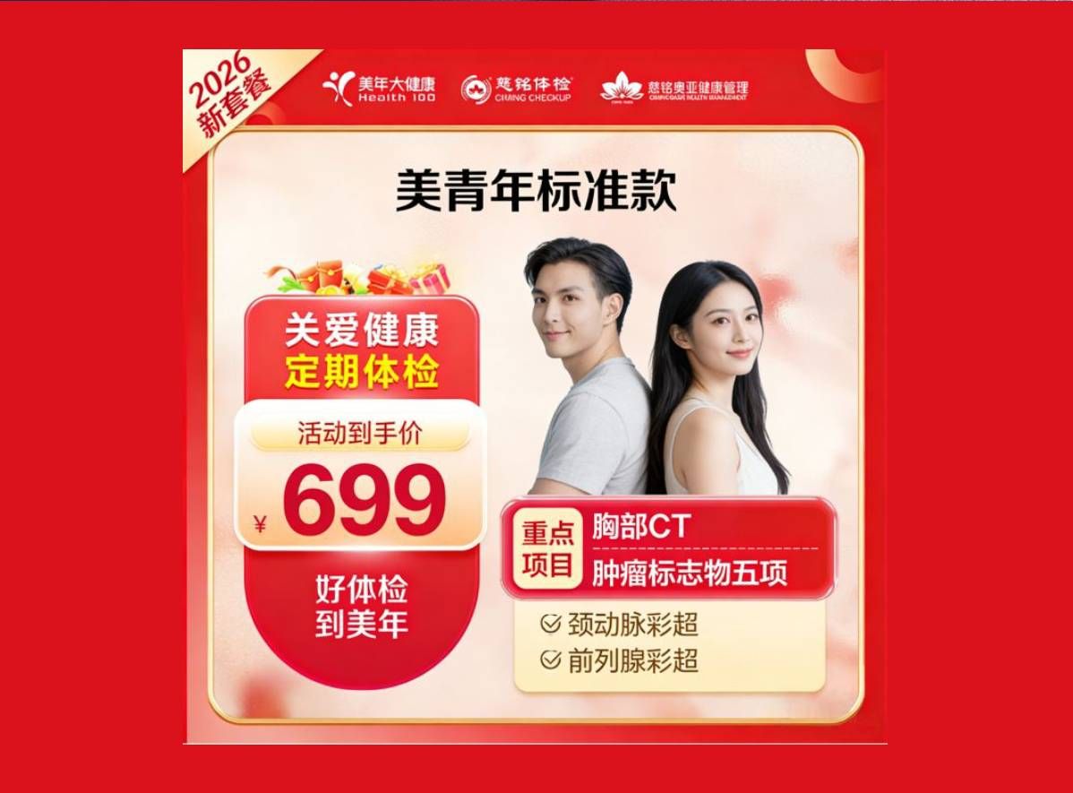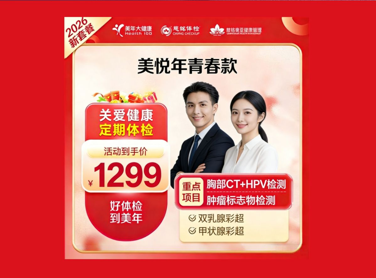 济南美年大健康2026美悦年青春款体检套餐,肿瘤标志物检测/乳腺超声/彩色多普勒超声+肺部CT+HPV检测